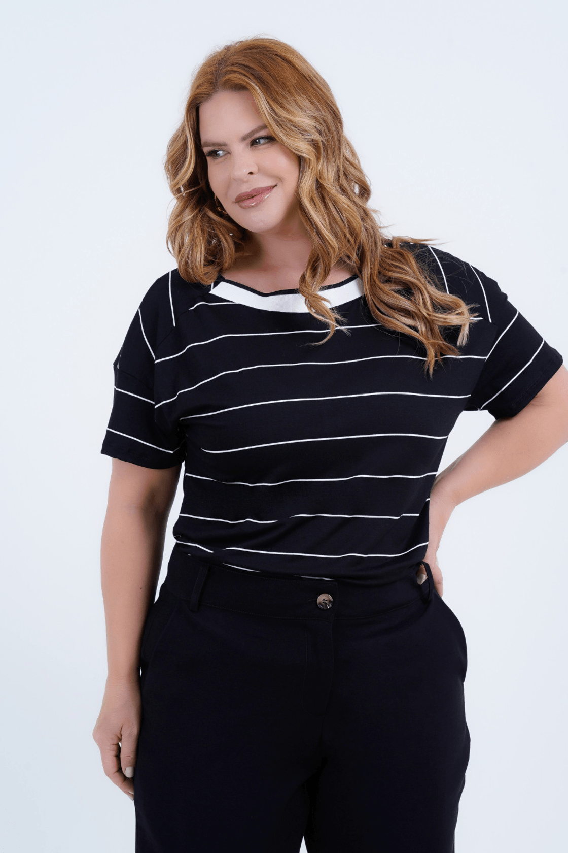 BlusasBlusas Manga CurtaBlusa Plus Size Feminino Manga Curta Massimo