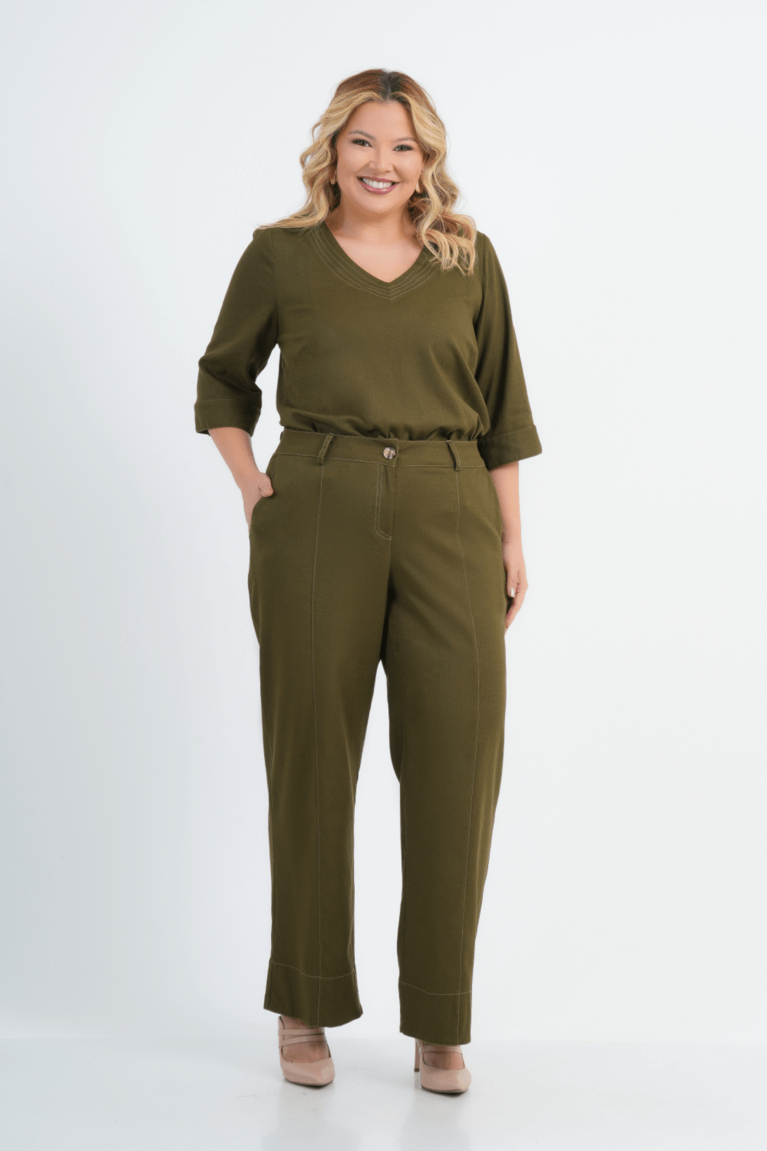 BLUSA PLUS SIZE FEMININO MANGA 3/4 LINHO CAPPUCCINO