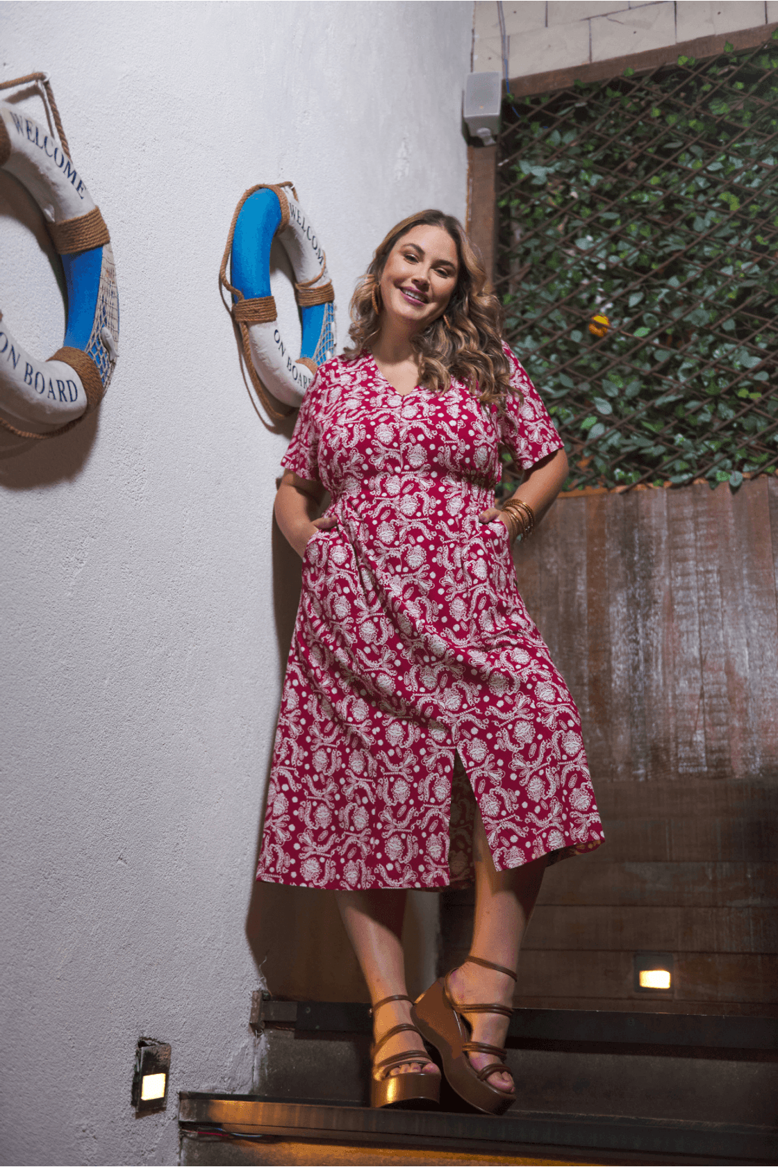 Vestido Plus Size Feminino Midi Ornamental
